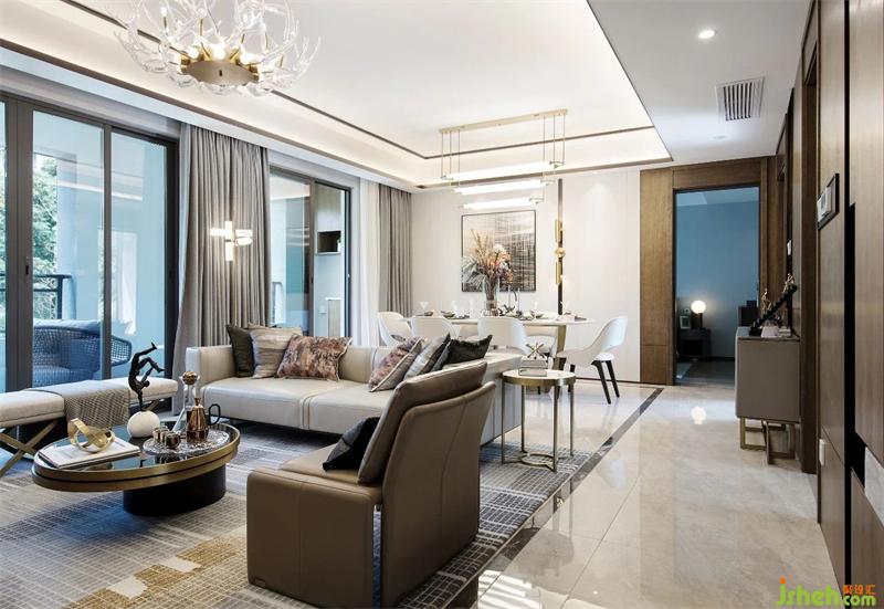 武漢樣板房設(shè)計造型與細(xì)節(jié)低調(diào)地詮釋出對生活的熱愛。線面結(jié)合的天花有妙不可言的靈動感,自然肌理的大理石墻面;精致的黃銅烤漆茶幾、紋理豐富的地毯、紳士品格的皮革沙發(fā)與空間相互呼應(yīng),增添生活儀式感。