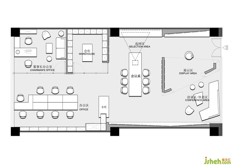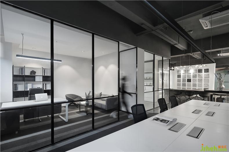 空間的大體色調(diào)最終確定為黑白。在呈現(xiàn)的姿態(tài)上,室內(nèi)設計師并不作富有視覺沖擊力的切割,不刺激眼球,作為背景畫布存在,旨在凸顯空間體驗和產(chǎn)品