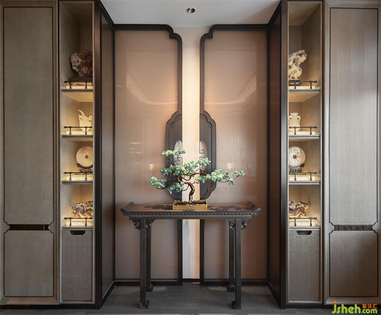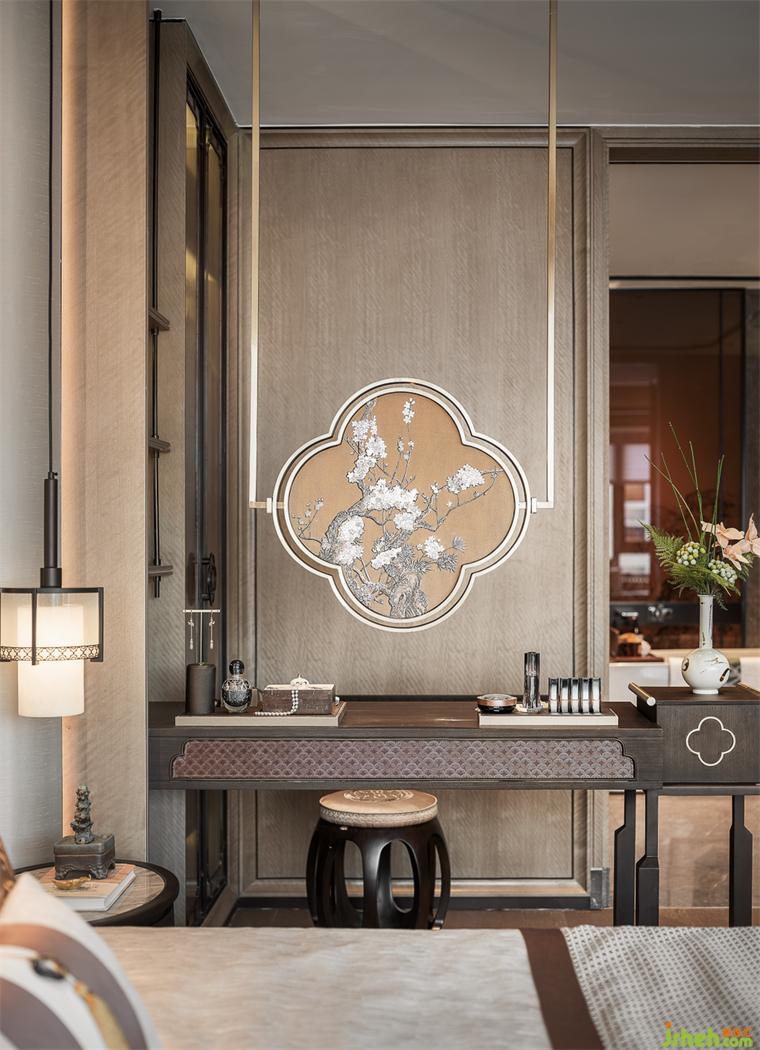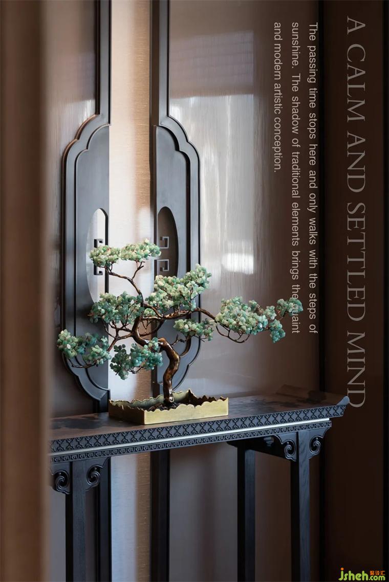 繁盛的花墻、桌椅鏡柜的設(shè)計(jì),或方或圓的器物形態(tài),樣板房設(shè)計(jì)都用了考究的工藝進(jìn)行處理,在空間中不搶戲、卻很出彩。