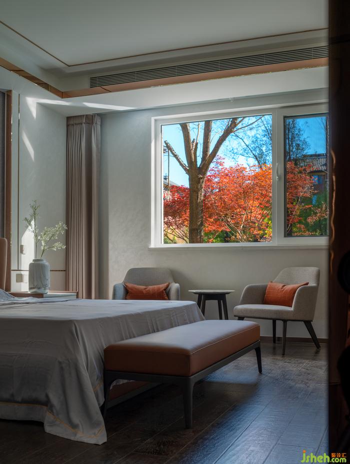 北京復(fù)式大宅設(shè)計(jì)將室外的自然風(fēng)景色融入睡眠空間,化去視覺(jué)和心理的繁雜與浮躁,營(yíng)造愜意、安靜的氛圍。