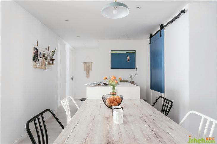 藍(lán)色穿插在餐廳空間中,挑選的裝飾畫(huà)也巧妙的運(yùn)用了藍(lán)色,