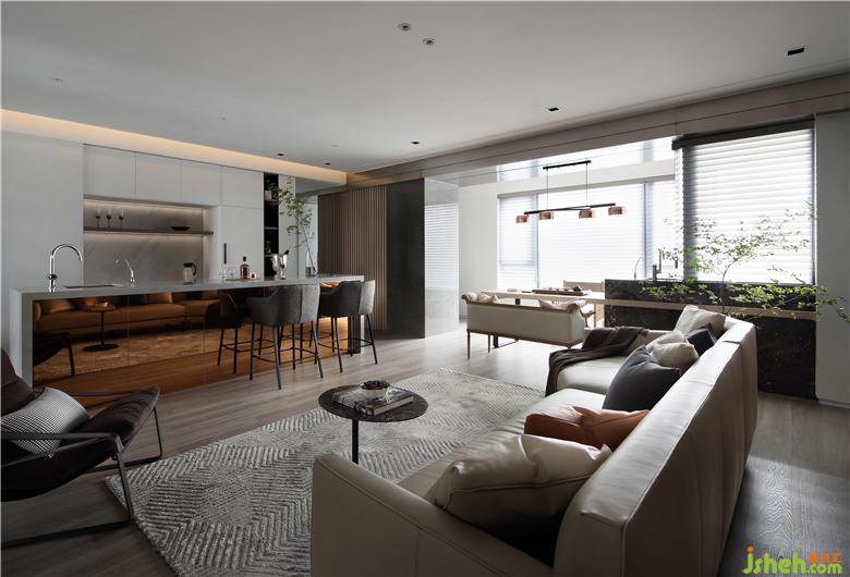 光影是空間的靈魂,材質(zhì)則是空間的表情。順應光的行進方向,室內(nèi)設計師用了不銹鋼板、玻璃、鏡面、石材,通過反射和折射,讓空間的光影層次更豐富,木飾面板則溫潤了整個空間。