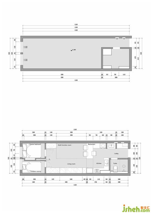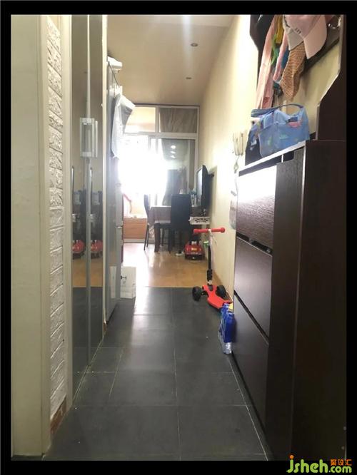 原本的過道較為狹長浪費了很多的空間 利用率非常的低,衛(wèi)生間的空間比較大 但是相對于整套房子來說比例失衡,因此我們將入戶門向東移 釋放門后的空間 增加儲物空間將過道最大化的利用。