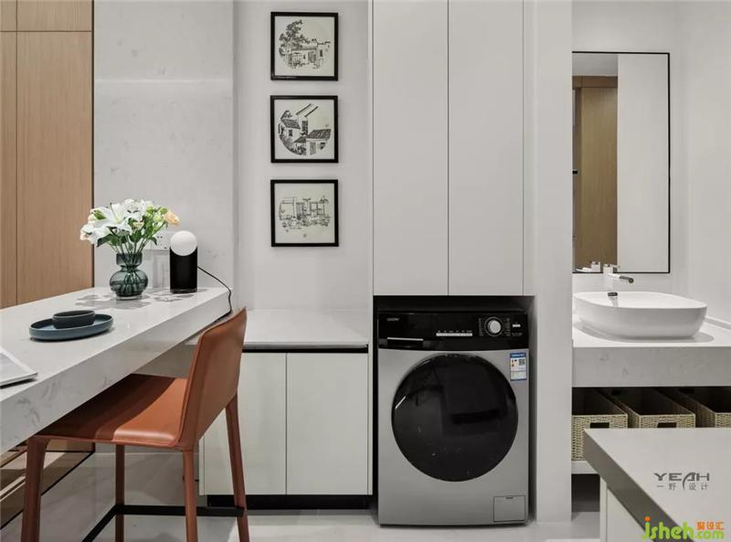 衛(wèi)生間采用了大面積的白色,干凈明亮而又不失質(zhì)感室內(nèi)設(shè)計師。