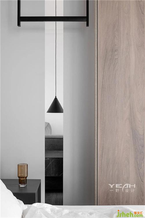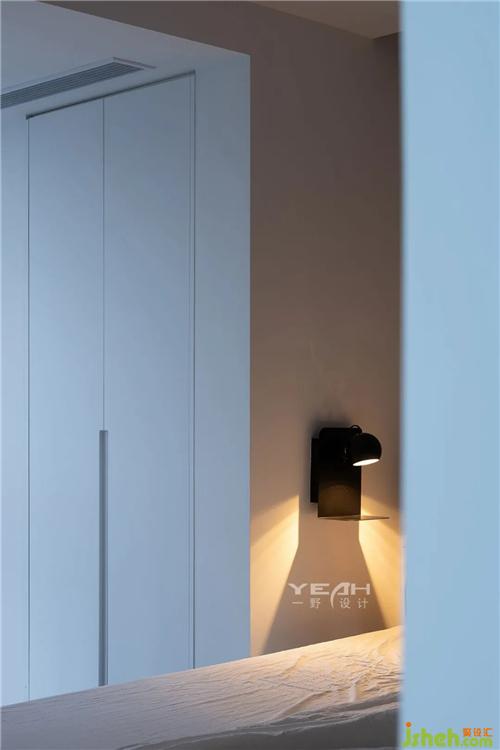 最喜歡的還是床尾看向外面的那扇落地窗,陽光明媚的早上,拉開窗簾,望著窗外,能發(fā)呆一上午。夜幕降臨,能欣賞到華燈初上的景象,室內(nèi)設(shè)計師也可攜萬家燈火入夢。