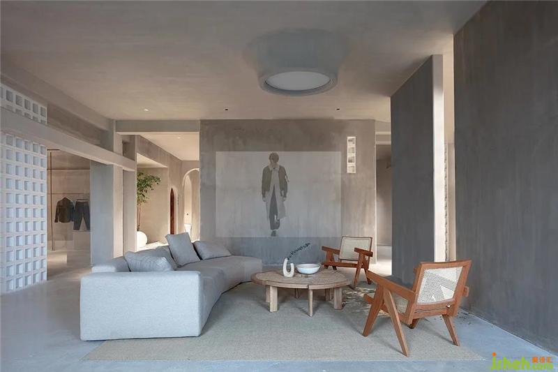 Abandoning excessive material stacking, the walls of the whole case are made of cement art paint, and the ground is freshly ground terrazzo,and the color tone is consistent. Between this body, each functional partition is cut out, and the interleaving problemof the structure is also considered. Much more.