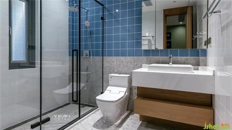 The bathroom attached to the bedroom also uses different colors to distinguish the owner's identity, and the colorful tile splicing is lively and dynamic.