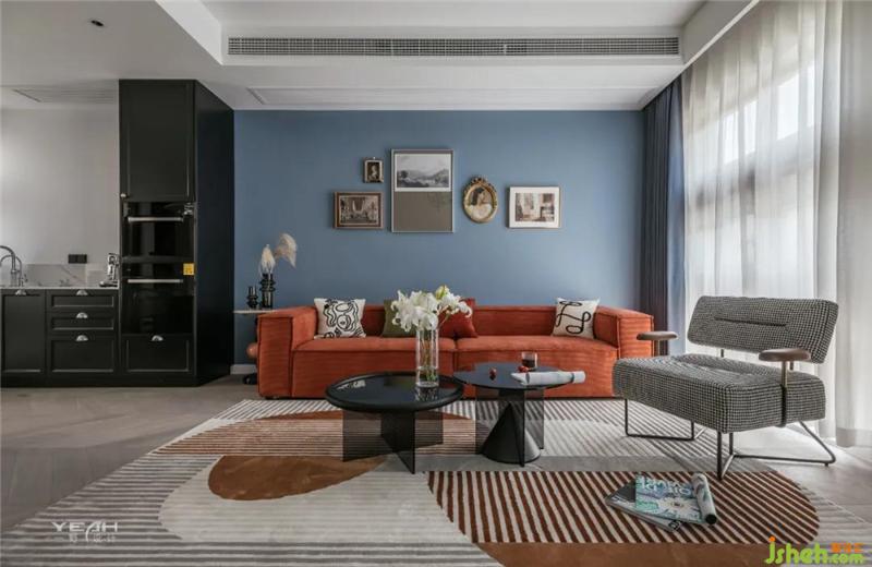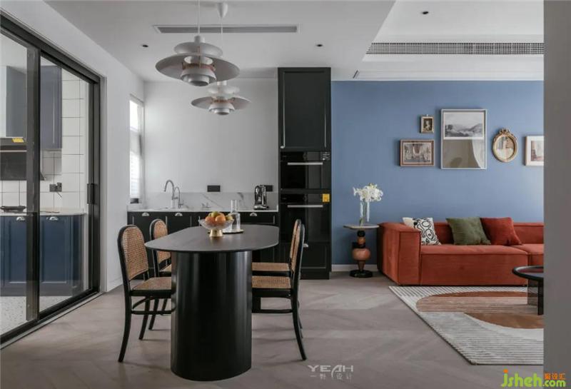 濃郁的暖色調(diào)與清爽的冷色調(diào)形成對(duì)比,強(qiáng)化了視覺(jué)效果,營(yíng)造多元化的居家氛圍。家具的質(zhì)感與色調(diào)傳達(dá)的情緒相呼應(yīng),于不同方面重復(fù)塑造空間的氣質(zhì)。