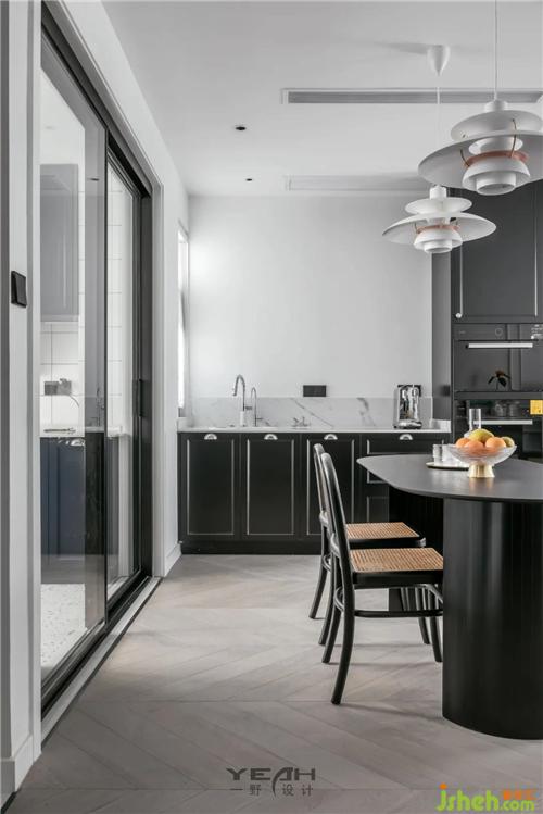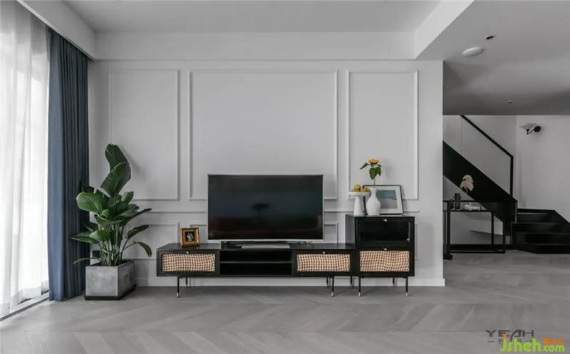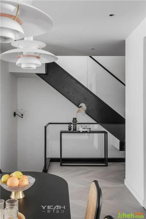 質(zhì)感的暗色調(diào)凸顯出空間不同的功能性。藤編家具貫穿客廳與餐廳,蘇州室內(nèi)設(shè)計(jì)師帶著復(fù)古氣息,讓人重回從前的慢時(shí)光。