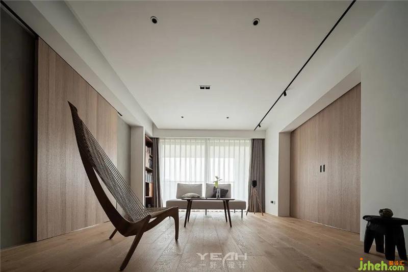 移門的存在,搭建出了一個變換自如的開放空間,邊界可有可無,收放有度,兼?zhèn)淞鲃有耘c私密性。打破常規(guī)的設(shè)計布局重塑了生活的形態(tài),賦予建筑自由獨特的生命力。