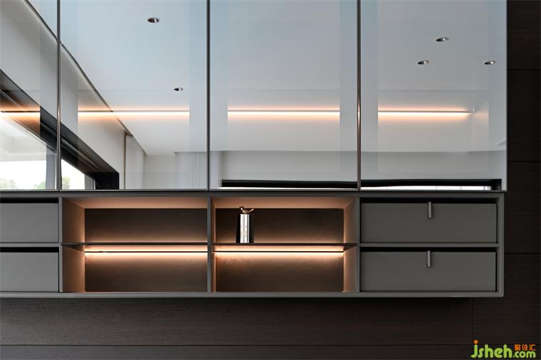 原生黑胡桃木的貴族氣質(zhì)與鏡面的反射效應(yīng),深邃,雋永。頂面裝置構(gòu)筑的材質(zhì)交替,為這套住宅增加了渾厚觀感。從室內(nèi)到室外,每一個細(xì)節(jié)都力求將鉆研精神和現(xiàn)代色彩相融合,營造出一種低調(diào)的高級感,歷久彌新。The noble temperament of the original black walnut and the mirror reflection effect are profound and meaningful.The alternation of materials of the top device adds a rich look to the house.From indoor to outdoor, every detail strives to integrate the research spirit with modern color,Create a low-key high-level sense,Time is new.