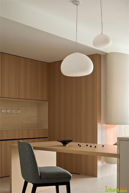 蘇州依蘭云庭家裝設(shè)計(jì)運(yùn)用原木色的中性模糊黑與白的邊界,柔和的燈光低調(diào)而優(yōu)雅地介入其中,在極簡的空間風(fēng)格里,凸顯有質(zhì)感的生活“痕跡”。浸潤在煙火氣里的廚房,有著幾分尋常人家的溫婉與熱鬧,待香氣散盡,空間再次重歸靜謐與舒緩。
