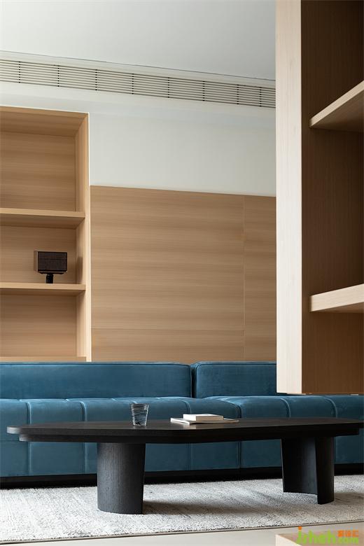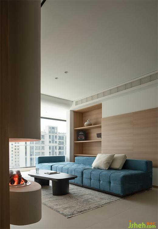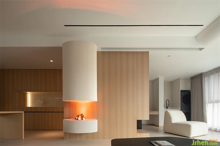 立體壁爐以弧形呈現(xiàn)在室內(nèi),懸挑結(jié)構(gòu)釋放空間個(gè)性。家具的布置不以繁縟花飾取勝,而是注重流暢簡潔的線條美,呈現(xiàn)層次錯落有致的視覺感,恰到好處地保留各自應(yīng)有的獨(dú)立性。清簡的配色、柔軟的材質(zhì),敘述著空間中漫不經(jīng)心的閑適與悠然。