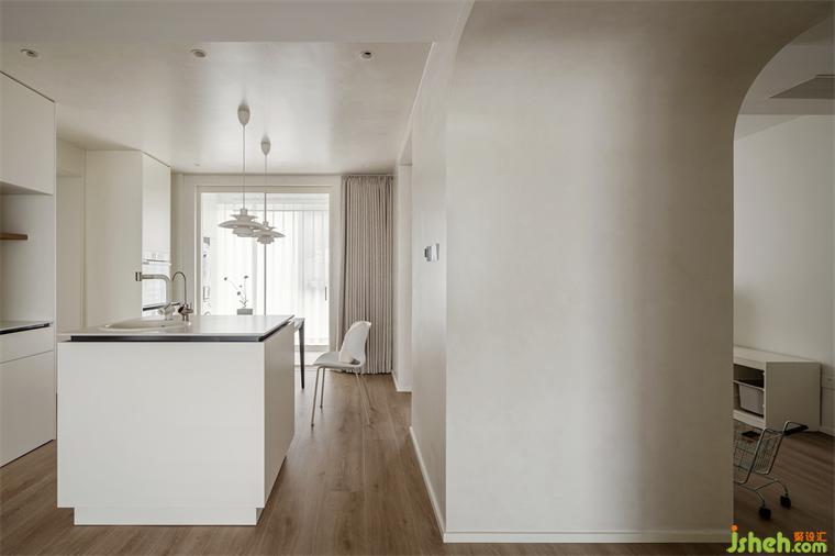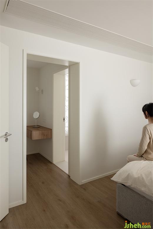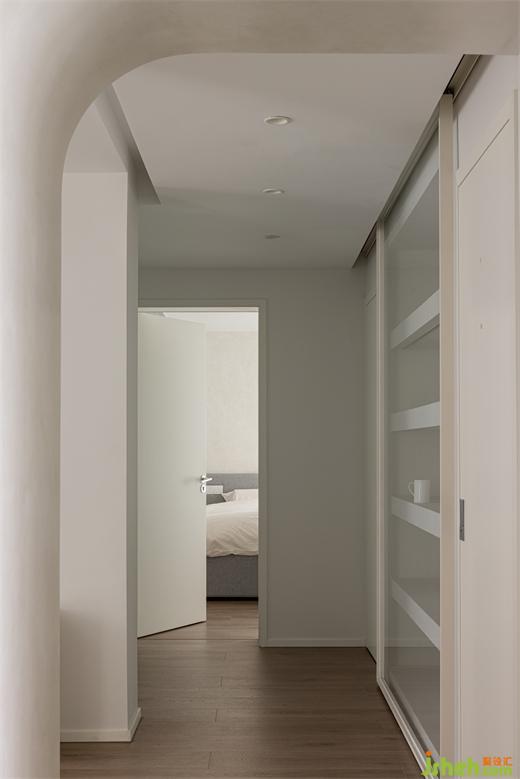 內(nèi)嵌入墻的展示格與玻璃移門組合,打破空間的壁壘,讓原本不起眼的角落,也能被裝扮的妙趣橫生。于白色基調(diào)的房間內(nèi),用生活的點(diǎn)滴與色彩,描繪出一個(gè)溫馨浪漫的家。