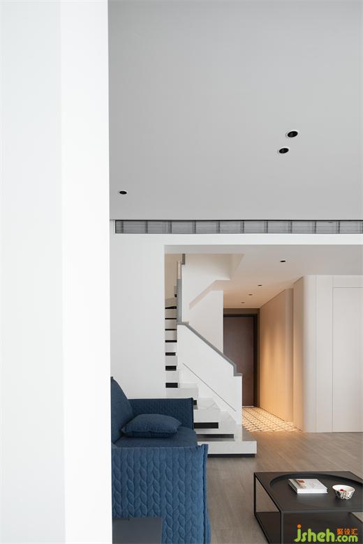 寶藍(lán)的色調(diào)沉靜優(yōu)雅,用色彩賦予空間活力。沙發(fā)的邊幾別具巧思,由臺(tái)階延伸而來,充滿想象力的設(shè)計(jì)不僅實(shí)用,蘇州別墅裝飾還富有讓人會(huì)心一笑的趣味性。