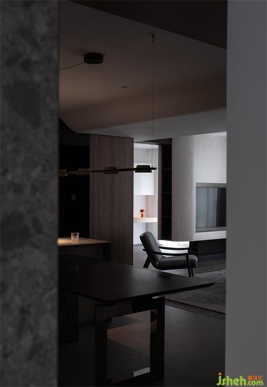 本案的業(yè)主是個獨居的男青年,由于生活習慣的特殊性,時常囿于黑夜。此次設計,我們希望打造出能凸顯出其獨特性格的居所。男主人獨居的原因,蘇州家裝設計為我們的布局展開提供了更多的可能性,隱私、干擾不再受太多限制,非必要的隔斷全部取消,空間最后呈現出自由之態(tài)。