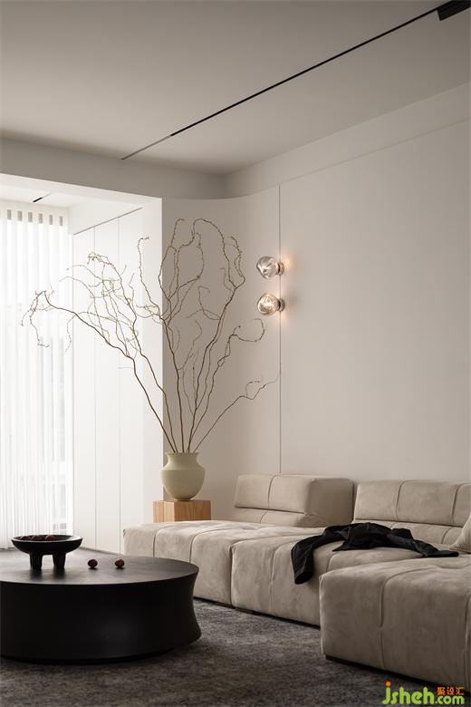 客廳的無主燈設計再次強調(diào)了“返璞歸真”的至簡之道,極大程度保留空間的完整性。自然的紋理,淺淡的色調(diào),家裝設計將精簡靜謐的氣質(zhì)再次升華,搭配轉角的弧形處理,賦予空間更為柔和的視覺感觀。自由舒適的模塊化沙發(fā),讓日常生活有了更多的變化與可能性。