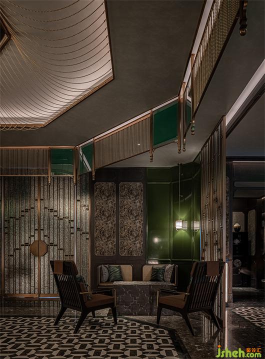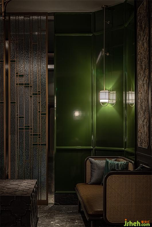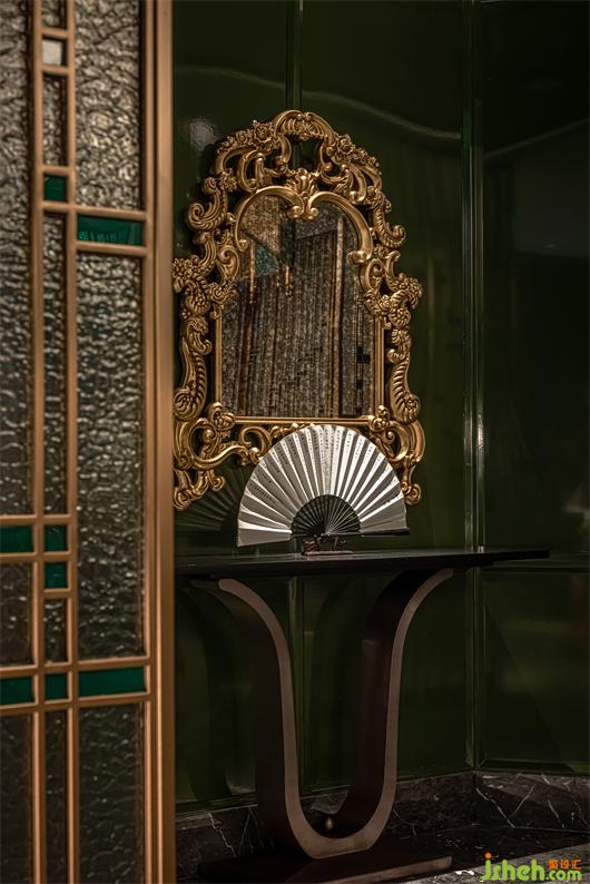 The material selection is mainly based on nostalgic texture. The deep stone and wood veneer, with bronze gold and dark green as the space to set off the retro tone. The combination of mosaic tiles, mottled embroidered mirrors, and colorful wallpaper make the environment richer and diversified, and also provide a more refined expression for the details.