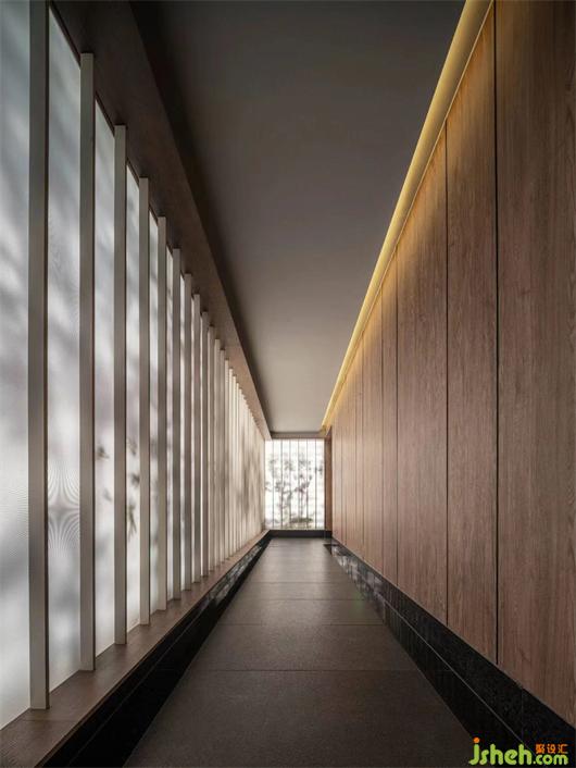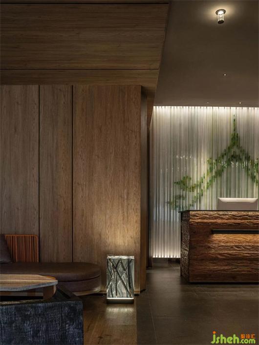 及至過道,豎向的格柵將墻面的光感推遠(yuǎn),養(yǎng)生店設(shè)計(jì)形成意境上的虛寫,加強(qiáng)走過時(shí)視線上的秩序與變化,給人以聯(lián)想的空間;