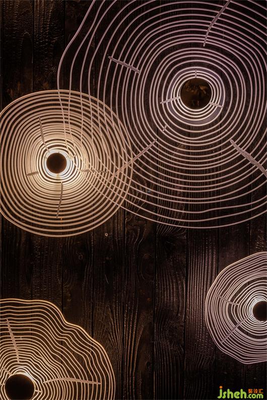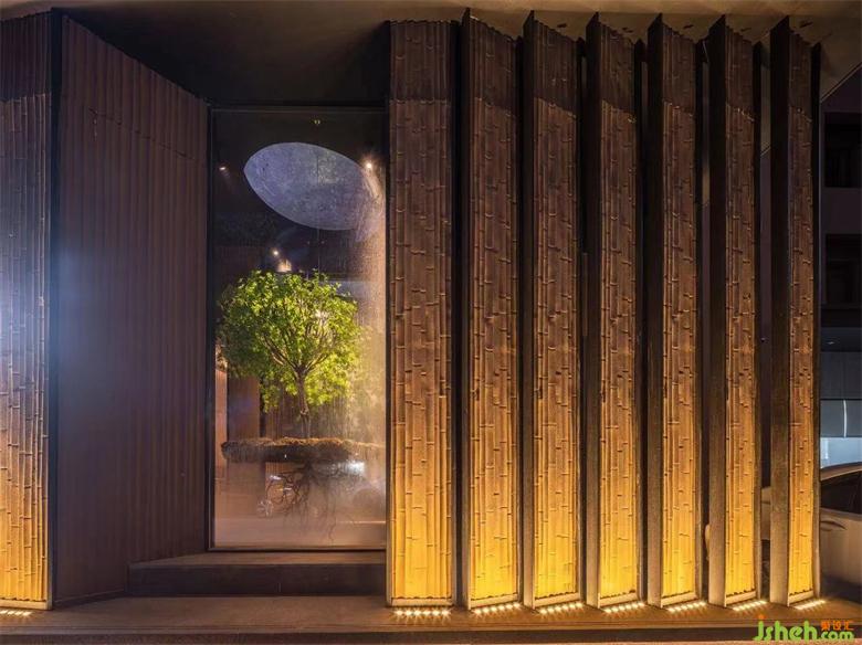 最終到達(dá)包廂之時(shí),撥開枝丫,重見暖陽(yáng)。萌發(fā)的枝葉也在這里逐漸繁茂為一片片的綠蔭,墻面的鏡子將這一片暖陽(yáng)無(wú)限延伸,也是意味著生命力的無(wú)限可能。