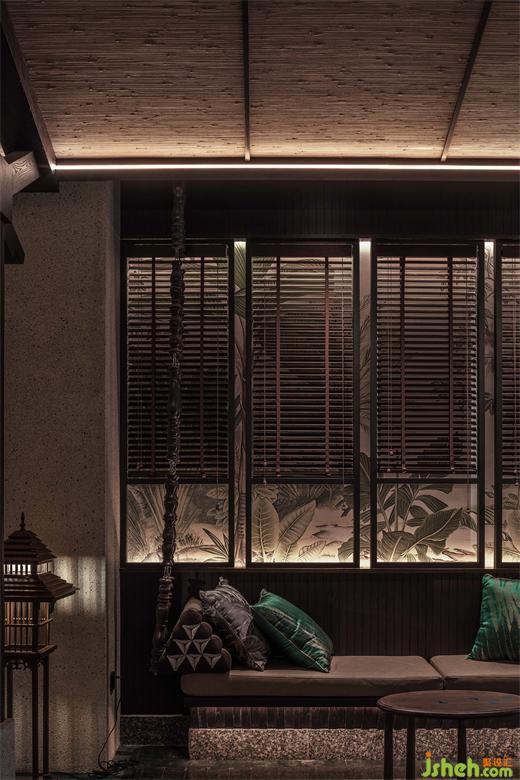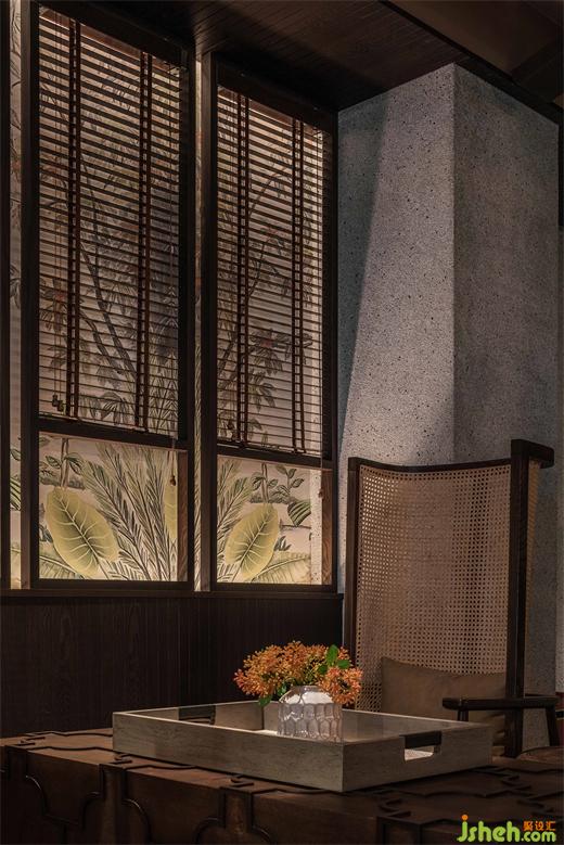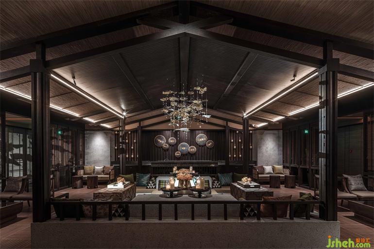 When Stilt Style Architecture are abstracted and reshaped,The array sense of the framework is strengthened, forming part of the "ceremonial sense" in the space.The touch of the log is presented in a new color, quality and shape,The bottom steps and stone piers, which are the cornerstones of the building, are softened into texture materials and laid out as the background color of the space.
