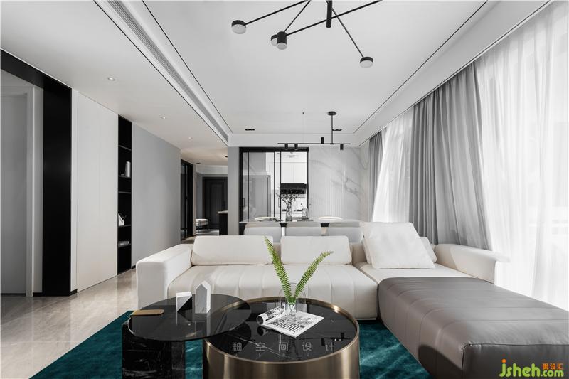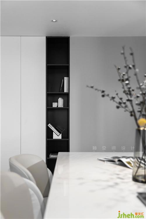 全屋整體以黑白灰為主基調(diào),展現(xiàn)出一個(gè)澄凈明亮的極致空間,干凈利落又張力十足。