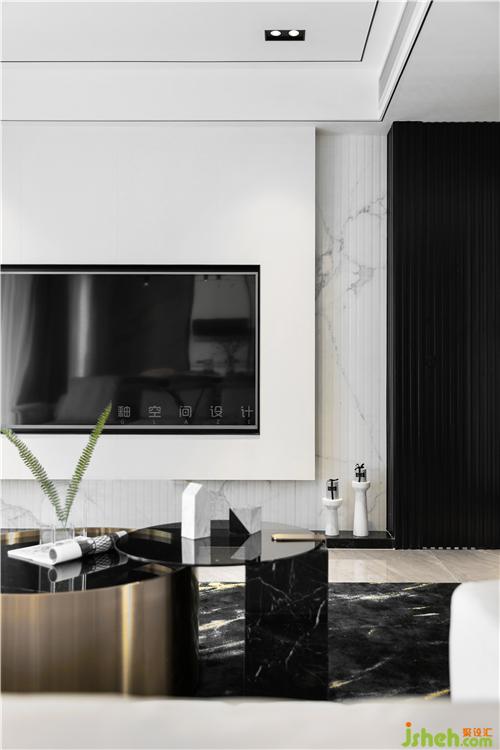 天花和燈具、電視和背景墻、墻面的木格柵和柜體、裝飾畫和方幾,各自成景,且互相成就。黑與白的對(duì)視,深圳室內(nèi)設(shè)計(jì)師正是一次次與自我內(nèi)心精神世界的對(duì)視,如同指觸大理石的清冽細(xì)膩般驟然心靜;嘈雜、糾結(jié)、懊惱、怨恨、憤怒...此刻通通化為了一池碧綠,心如止水。