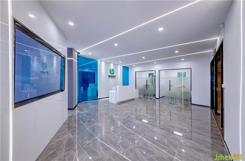 前廳的設(shè)計以簡潔白色石材與天藍色鏡面形成對比,辦公室設(shè)計采用非對稱性的勻光線條燈帶的設(shè)計連接天花與墻面體現(xiàn)出科技公司的創(chuàng)新,靈動。開放辦公區(qū)墻面設(shè)計以線帶面,提取科技藍、森林綠的企業(yè)色與淺灰色形成折線導(dǎo)向關(guān)系,搭配白色基調(diào)的家具,與條紋編織地毯形成強烈的對比,在辦公空間中體現(xiàn)了儒翰基因公司的人文精神,辦公室設(shè)計讓員工可以在工作中提高工作效率,在辦公區(qū)設(shè)置了半透明的休息討論區(qū),既滿足了休閑的需求,辦公室設(shè)計同時也加強了同事之間的溝通。