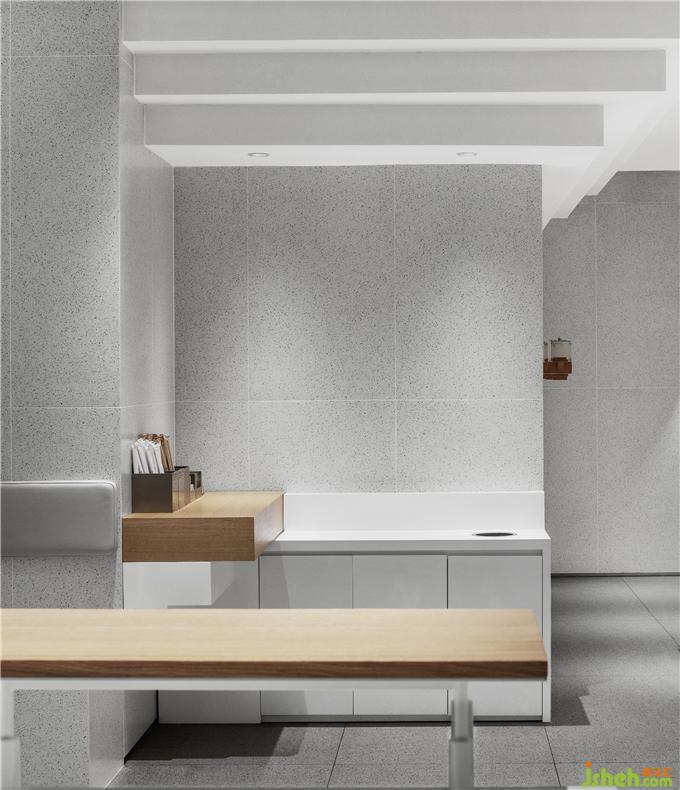 ▼ 茶具以傳統(tǒng)的陶土為器身,壺蓋則以透明亞克力制成,底部臺(tái)階狀的形式便于固定于墻面。奶茶店設(shè)計(jì)