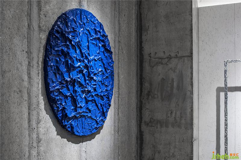 ▼ 墻面的藝術(shù)品以揉皺的錫紙結(jié)合品牌色制成,與展示的產(chǎn)品產(chǎn)生聯(lián)系與呼應(yīng)。服裝店設(shè)計(jì)
