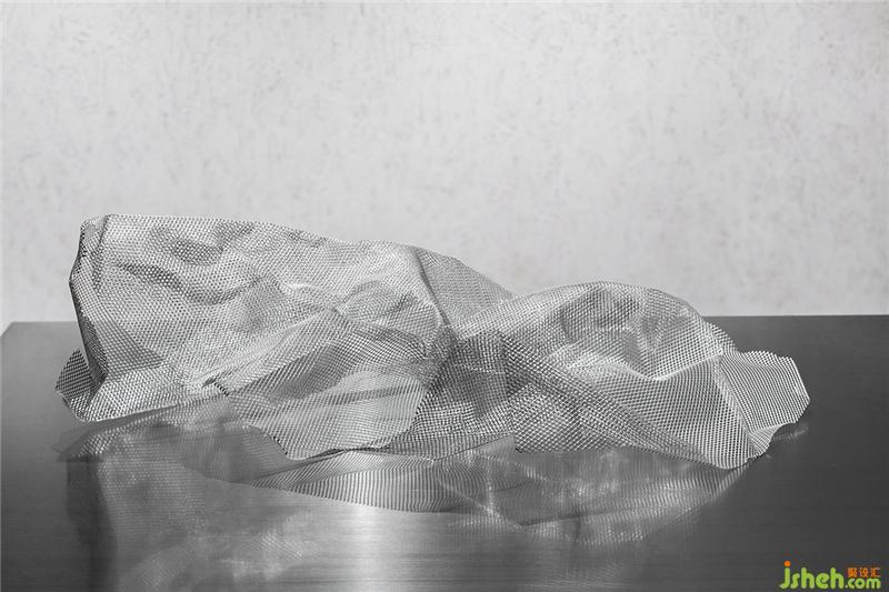 The artwork on the wall is made of crumpled tin foil in brand color, which is connected and echoed with the displayed products