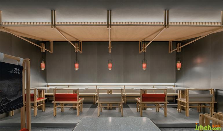 南寧餐廳設(shè)計從通道看下屋檐下的用餐區(qū)