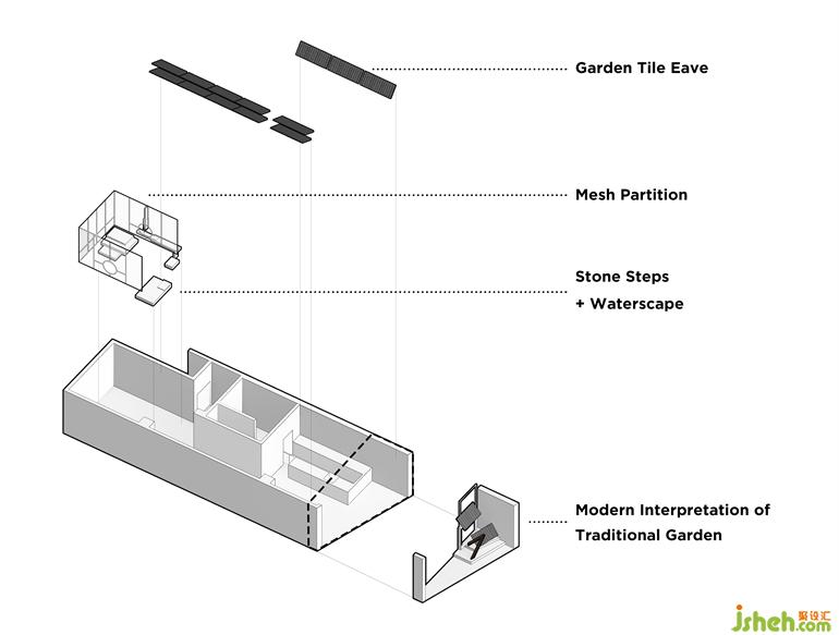 在深入的理解園林的精神后,MOC對(duì)江南園林的元素進(jìn)行提取、拆分和重組,蘇州餐廳設(shè)計(jì)通過(guò)空間向顧客講述7分甜的眼中的蘇州印象,以小窺大,希望顧客通過(guò)一家小小的門(mén)店,更深入地領(lǐng)略到園林之美。