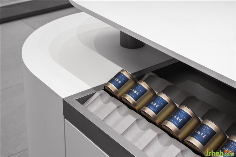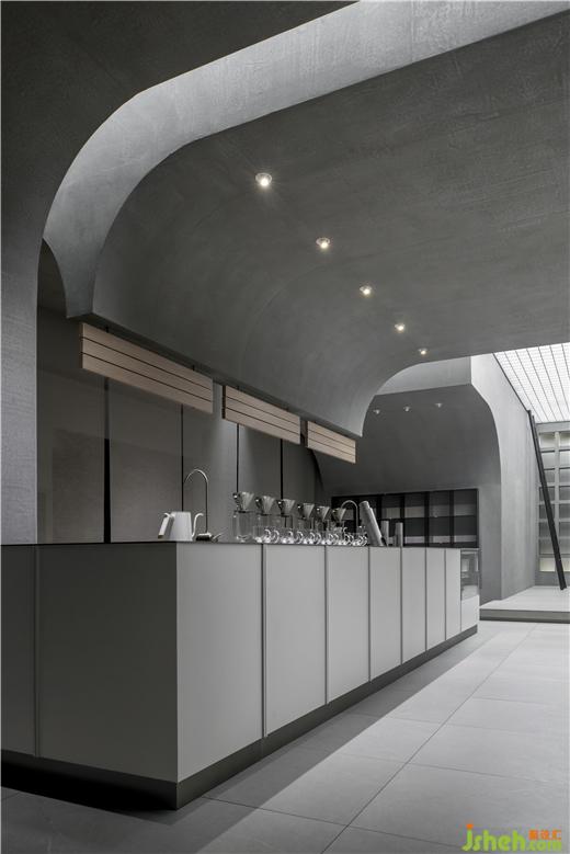 手沖茶店設(shè)計(jì)極簡(jiǎn)的吧臺(tái)形式,搭配品牌自有的手沖茶具