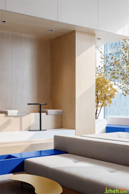 溫暖的調(diào)性和多樣化的座位形式滿足了不同時段的使用需求,除此之外,極氪中心西安南湖金座展廳設(shè)計規(guī)劃了一個獨立的長桌閱讀室以滿足安靜閱讀的需求。