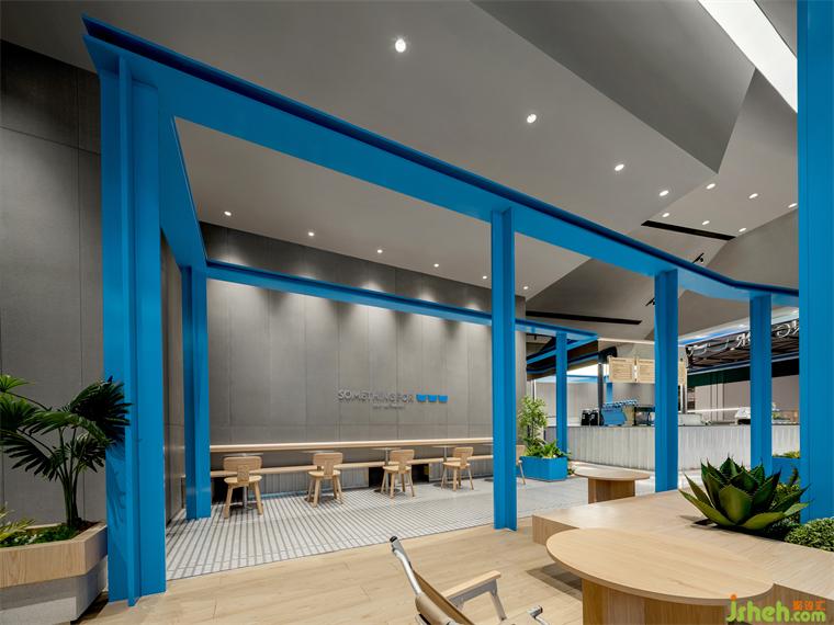 坐落在松山湖中庭區(qū)域,something for擁有一面面對(duì)中庭,一面面對(duì)室內(nèi)通道的場(chǎng)地條件??Х葟d設(shè)計(jì)師決定把休閑庭院的感受再次帶給用戶,讓人們能在此地享受片刻閑暇。
