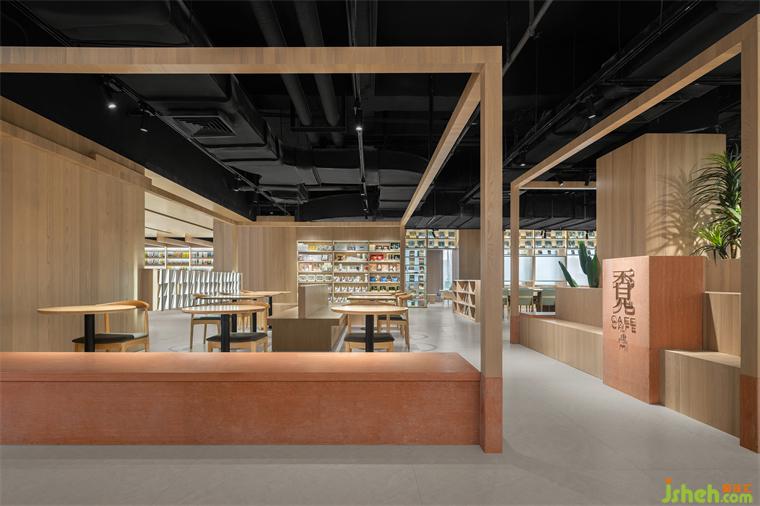 抽象形態(tài)的屋厝框架構(gòu)成錯(cuò)落有致的微型院落組合,同時(shí)也隨之自然的劃分出屋舍與通道。書店設(shè)計(jì)屋舍融合座位和景觀,讓人與空間互為流轉(zhuǎn)的風(fēng)景。
