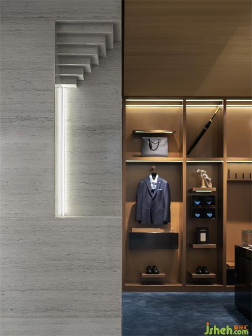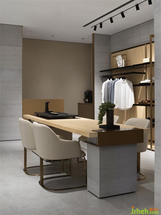 這個(gè)區(qū)域內(nèi),設(shè)計(jì)師追溯定制的概念,以皮尺的刻度為元素打造精品定制墻,呈現(xiàn)精致嚴(yán)謹(jǐn)?shù)木赓|(zhì)。