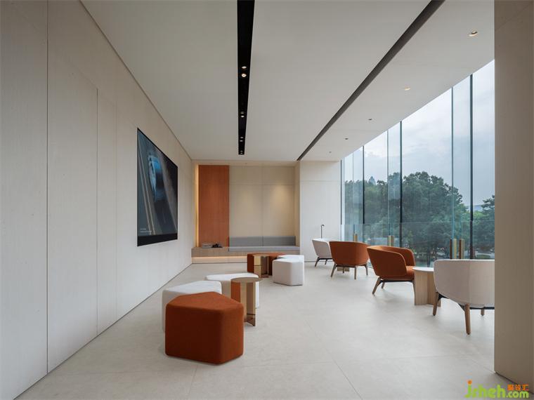 4S店設(shè)計(jì)多功能區(qū)設(shè)置在樓梯旁,形成一個相對獨(dú)立的區(qū)域。不僅在日??梢宰鳛樾蓍e區(qū)的補(bǔ)充,也可快速轉(zhuǎn)換為獨(dú)立活動區(qū)。
