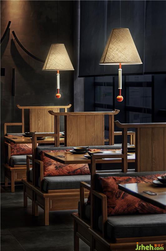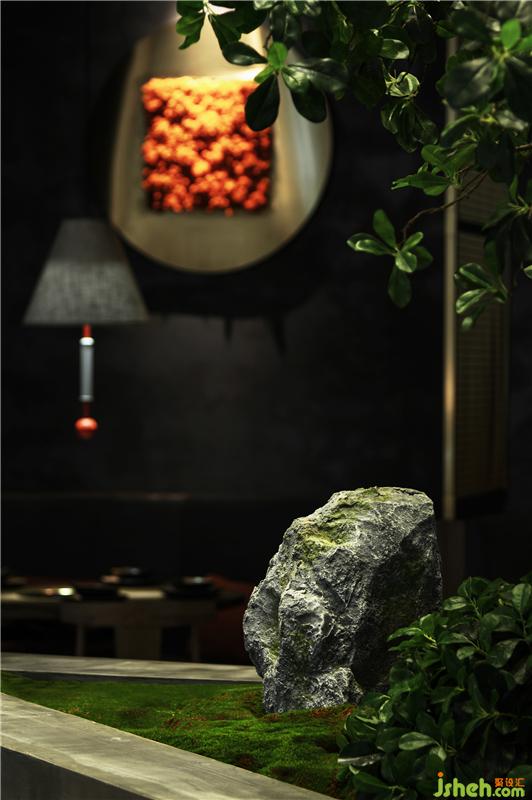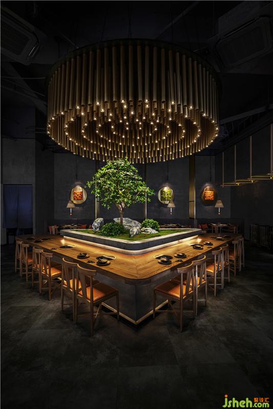 心靈的歸屬感幻化為具象的屋頂,因?yàn)椤绊敗笔窃O(shè)計(jì)者心中空間的界定。門口的屋頂元素成為室內(nèi)外空間的分割,同樣的造型元素延伸至室內(nèi)逐漸深入的歸屬感在設(shè)計(jì)者的心中蕩漾,我們開始添加一點(diǎn)潤(rùn)物之水,再由水的畫面感帶來遠(yuǎn)山在側(cè)清風(fēng)入懷的遐想。以設(shè)計(jì)的語(yǔ)言進(jìn)行時(shí)間與空間的交流,達(dá)到意與形的和諧,尋找商業(yè)空間與東方靜學(xué)的藝術(shù)平衡。理極幽玄以物抵心,造物之美無外本真。餐廳設(shè)計(jì)