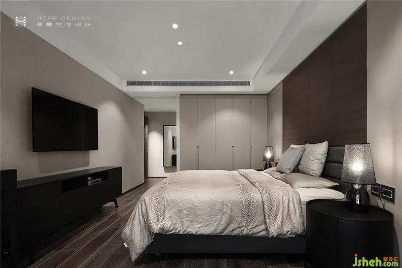 臥室是放松自我的最好安全區(qū),獨立私密,回歸本我。床頭背景采用咖色木質(zhì)墻板加灰色軟包,同色系軟包和床頭柜糅合,背景墻板與地板色系相通,燈光映襯質(zhì)感絕佳深圳裝修設(shè)計。