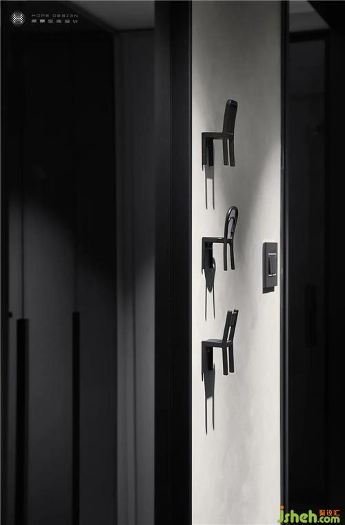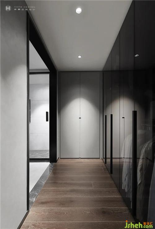 衣帽間采用半開放式設(shè)計,玻璃柜門增加了展示性。實為收納,虛于展示,虛實結(jié)合讓空間更顯寬敞。