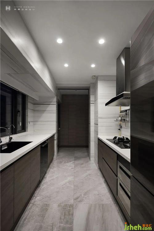 玄關(guān)右側(cè)是廚房區(qū)域,我們在優(yōu)化餐廚動(dòng)線的基礎(chǔ)上通過合理切割資源,打造了獨(dú)立的中西廚區(qū)域房。從西廚“借”了一部分空間給玄關(guān),為玄關(guān)增加鞋柜與儲(chǔ)物柜。深圳裝修設(shè)計(jì)西廚增設(shè)巖板吧臺,在不同光線的作用下,自然細(xì)密的肌理顯露出不同層次的色彩,方寸間勾勒出碎碎念與小歡喜,層層鋪開溫馨的生活碎片。