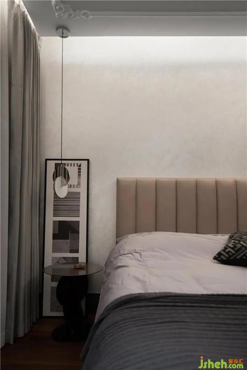 主臥則以低雅不爭的灰與木材鑄就輕奢的優(yōu)雅形制,賦予空間豐盈飽滿的美學質(zhì)感。綿延出寧靜的詩意。大面積窗戶增加了室內(nèi)光源,窗簾選用了純白雪紗營造靜謐舒適的簡單空間。在置入法式家具及配飾元素與現(xiàn)代家具相互結(jié)合,令空間充滿了時尚氣派的高雅感溫州裝修設計。