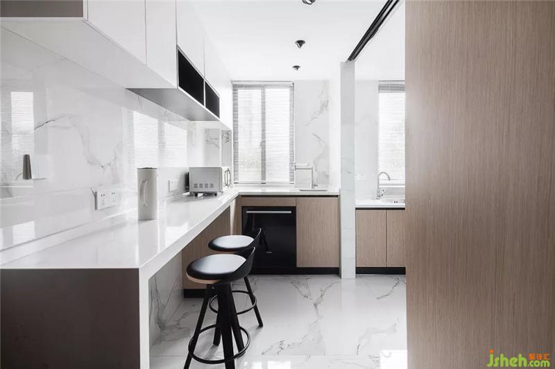 廚房隱藏式雙節(jié)伸縮門設(shè)計(jì),解決了時(shí)下敞開(kāi)式廚房的油煙問(wèn)題,美觀又實(shí)用