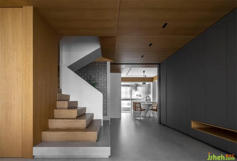 整個(gè)客廳空間采用了無(wú)主燈設(shè)計(jì),兩條貫穿客餐廳裝修設(shè)計(jì)的軌道燈就是主要的照明方式??蛷d處輔以筒燈點(diǎn)綴,增加局部區(qū)域的照明度。吧臺(tái)的設(shè)置,在空裝修設(shè)計(jì)間兼具多種功能??蛷d兩側(cè)的隱形壁櫥設(shè)計(jì),也使得儲(chǔ)存功能大大增加,在兼具美觀(guān)的同時(shí)包容生活的雜糅。