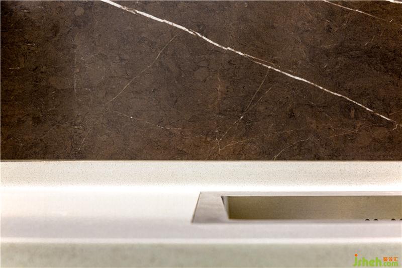 我們希望餐廚空間簡潔利落,讓家庭廚師日常操作順暢無阻點,即使是臺面石材與磚之間也平和流暢,干凈整潔的廚房是主人善意純粹的人格物化。