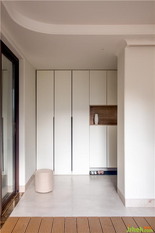大面積儲藏與展示相結(jié)合的柜子,收納著兒時的玩偶與讀物,疊放著的相冊是家人共同成長的軌跡,四口之家的親昵情感都在這一收一放之間流轉(zhuǎn)。