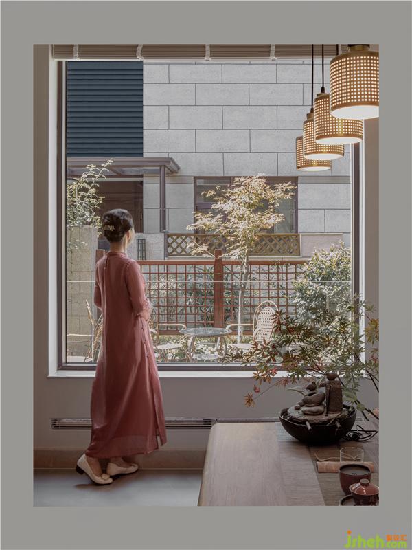把竹葉新中式裝置點綴天井墻上由下往上,是積極生長的力量舞動旋轉(zhuǎn),方寸間,感知主人對陽光的向往同時也追求一種積極的生活態(tài)度!