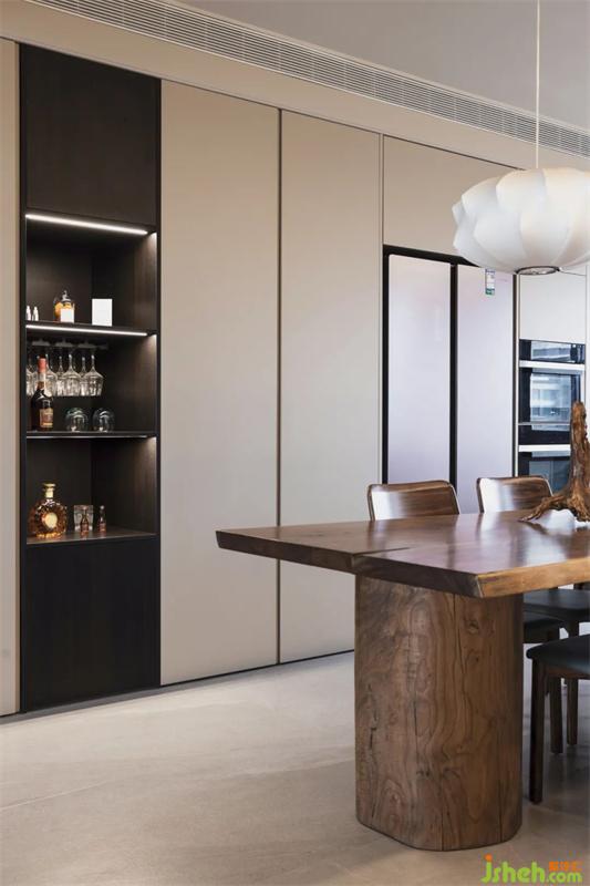 餐桌和寬大的吧臺(tái)相連,